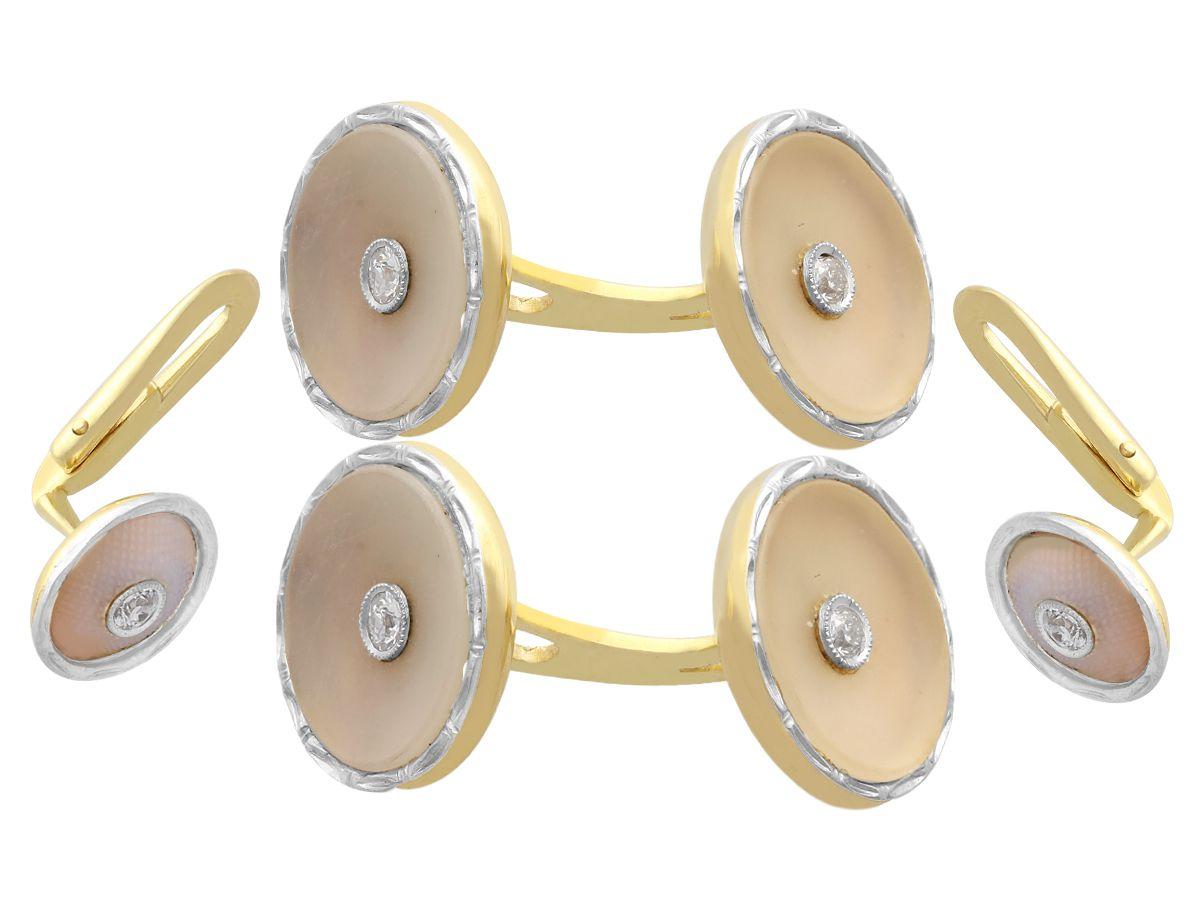 0.25ct Diamond & Crystal, 14ct Yellow Gold & Platinum Cufflink & Stud Set