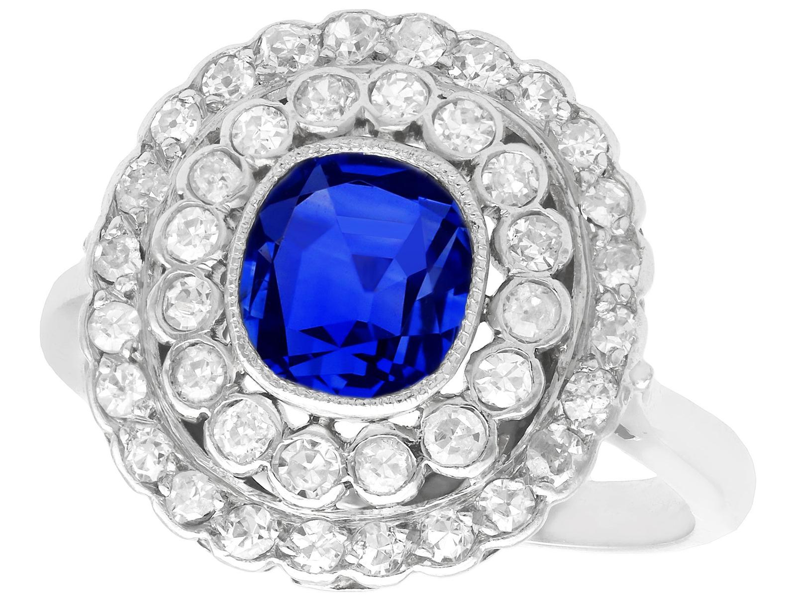 1.60ct Sapphire & 0.70ct Diamond, Platinum Cluster Ring c.1930