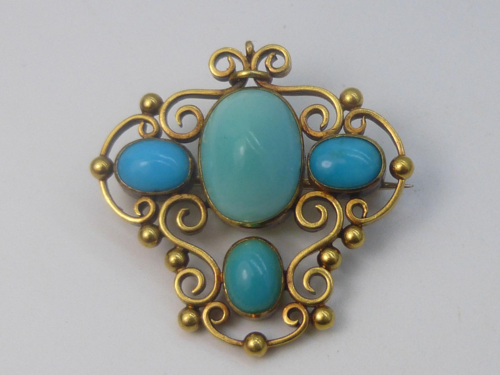 15ct Gold & Turquoise Brooch