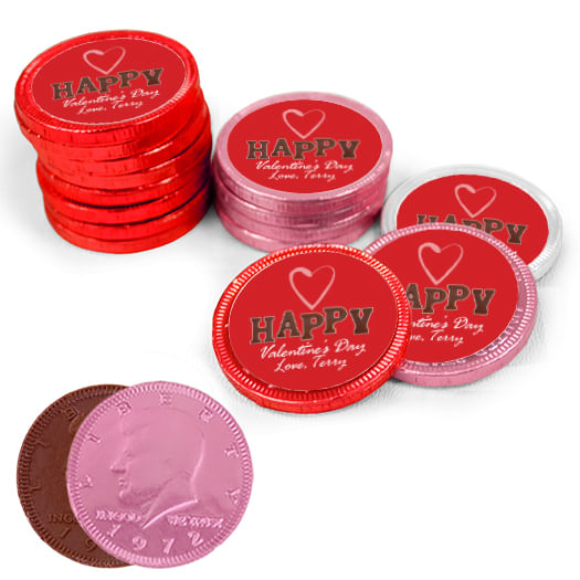 Valentine's Day Happy Heart Milk Chocolate RedPink and White Coins with Stickers (84 Pack)