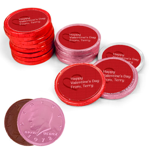 Valentine's Day Conversation Heart Milk Chocolate RedPink and White Coins with Stickers (84 Pack)
