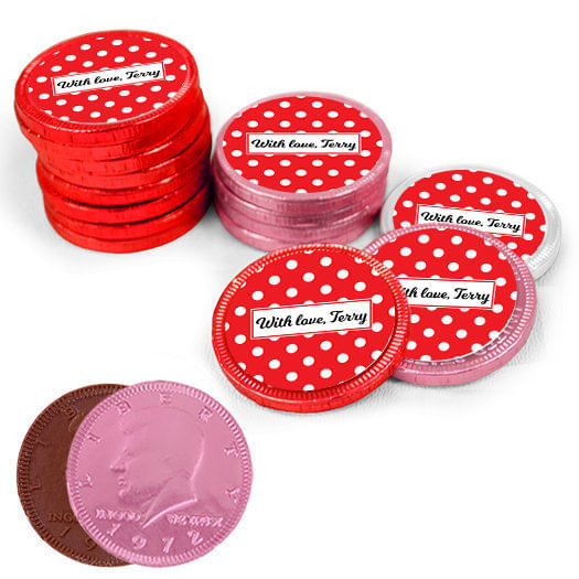 Valentine's Day Dots Milk Chocolate RedPink and White Coins with Stickers (84 Pack)