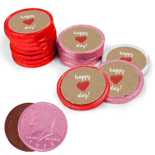 Valentine's Day Scribble Heart Milk Chocolate RedPink and White Coins with Stickers (84 Pack)