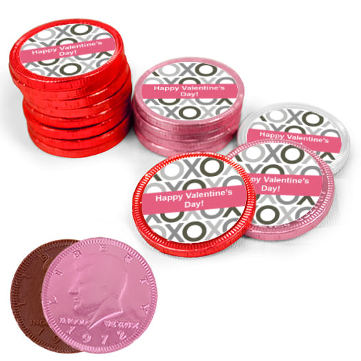 Valentine's Day XOXO Milk Chocolate RedPink and White Coins with Stickers (84 Pack)