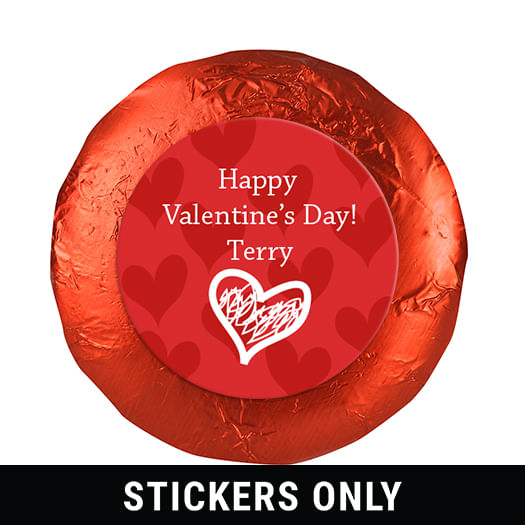 Valentine's Day Scribble Heart 1.25" Stickers (48 Stickers)