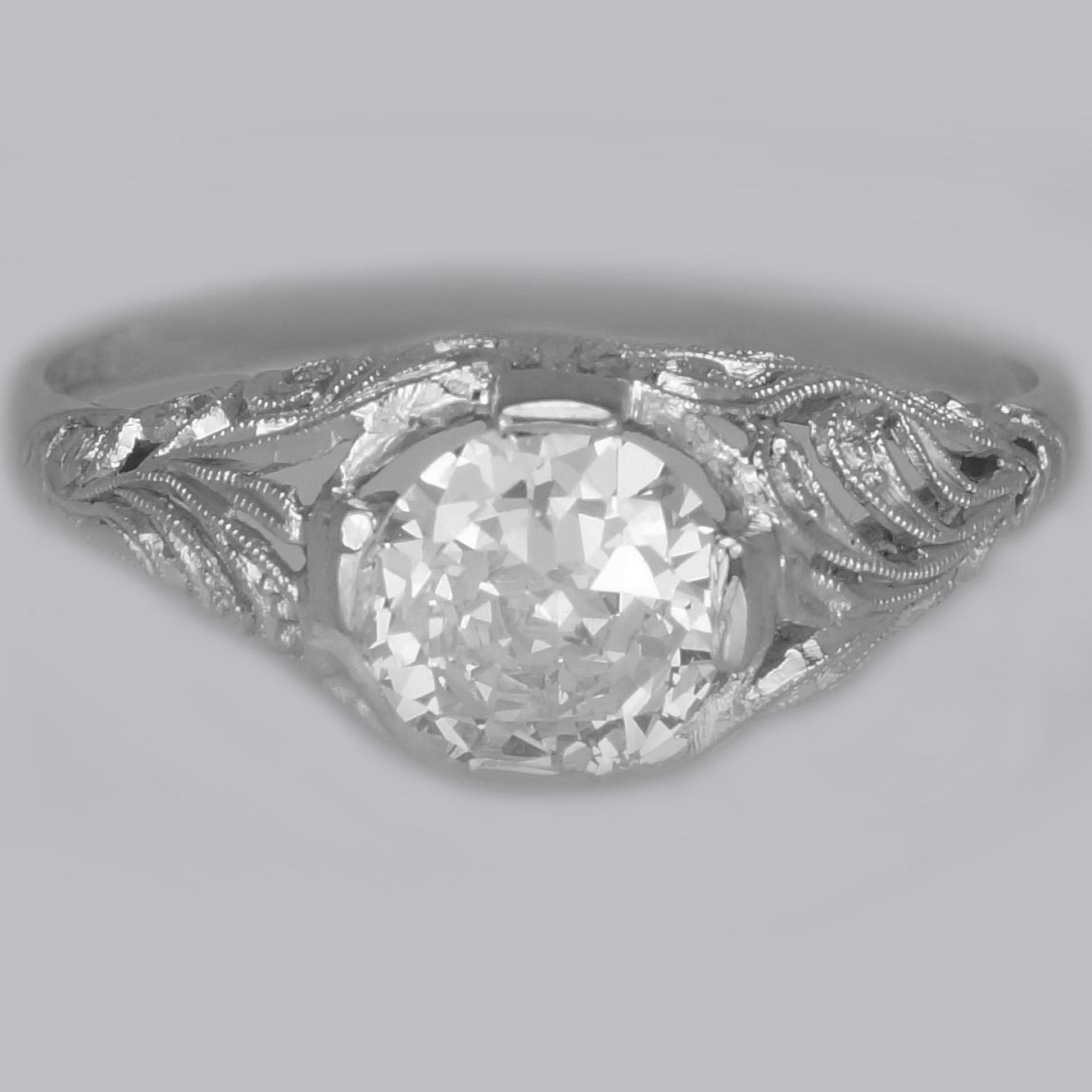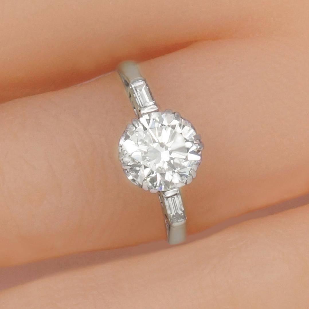 Solitaire Engagement Ring with Gem Lab Report 1.44ct Diamond Art Deco Platinum Ring