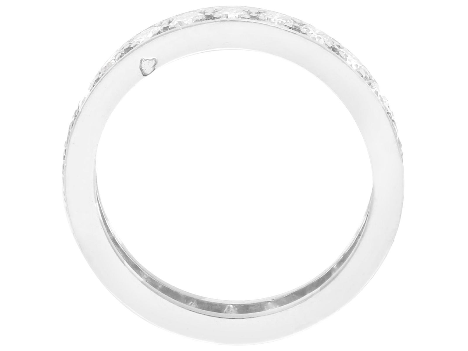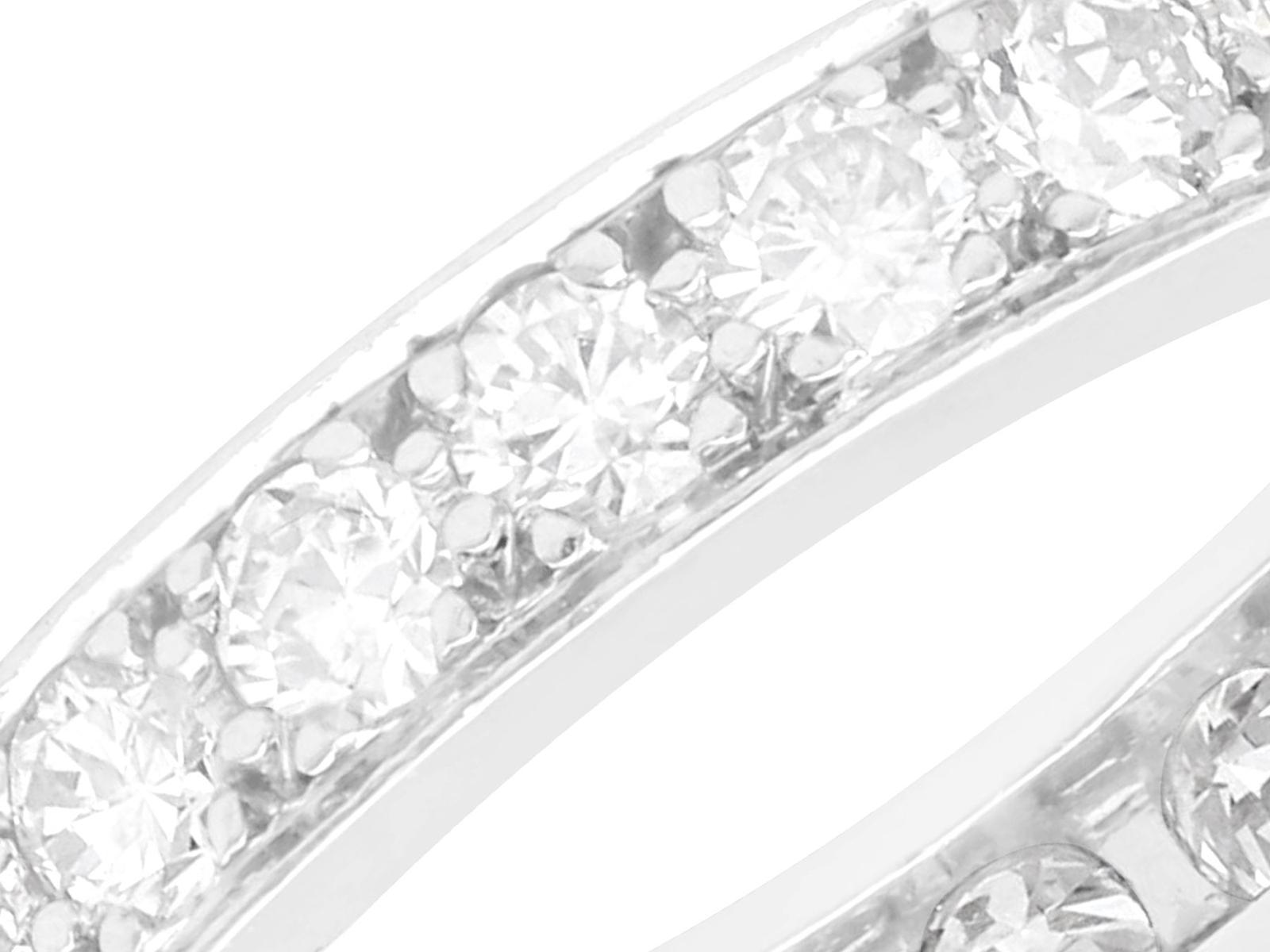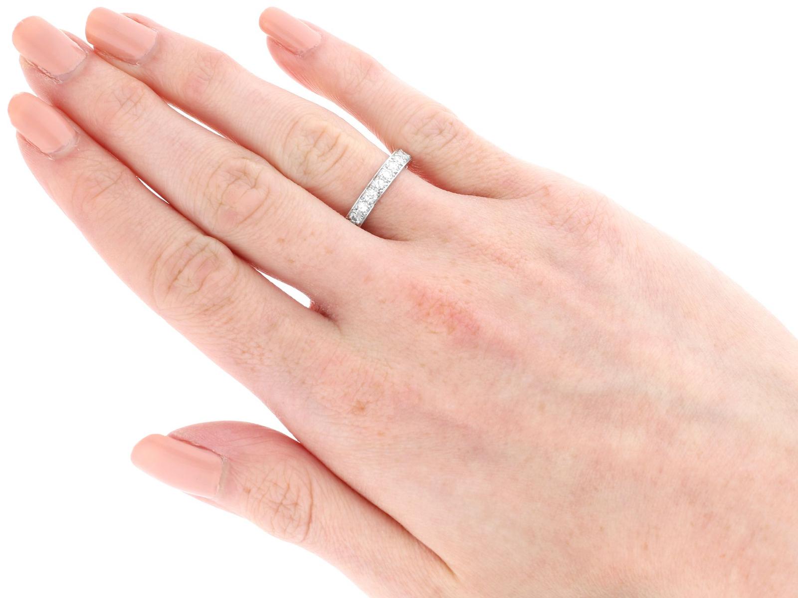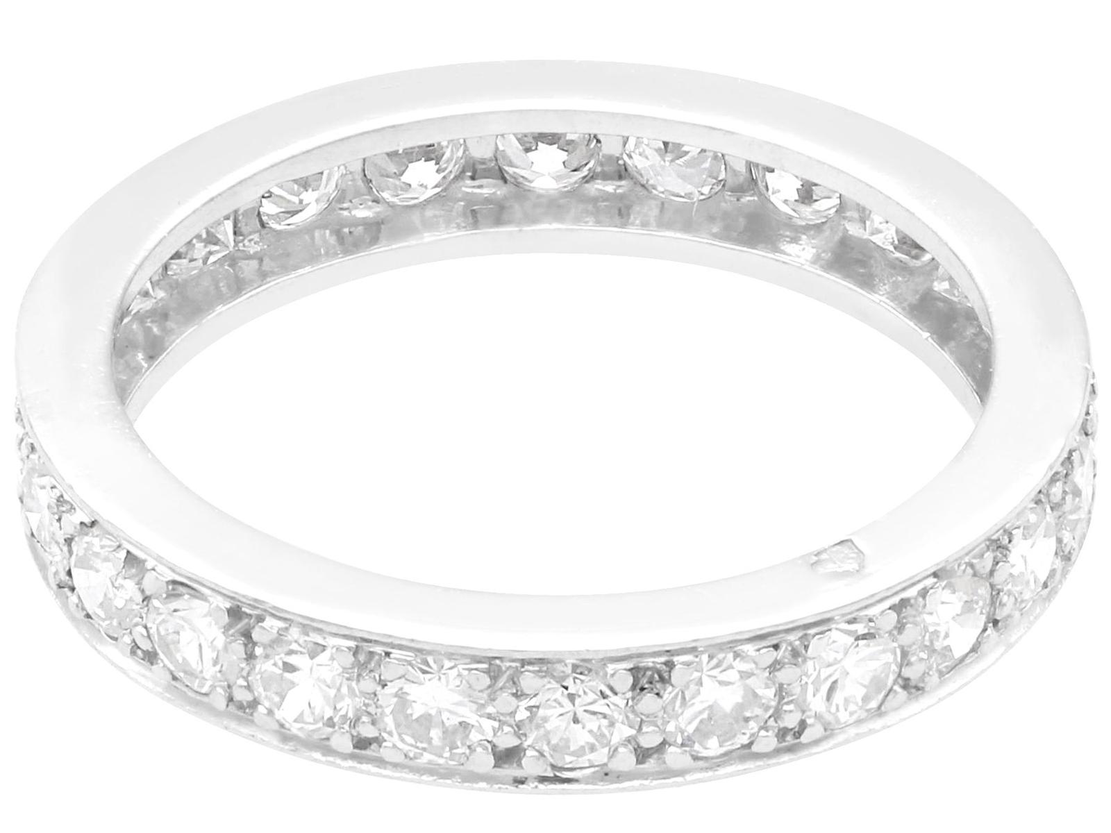 A fine and impressive 1.20 carat diamond and platinum full eternity ring; part of our diverse antique jewellery and estate jewelry collections.nnThis fine and impressive antique diamond eternity ring has been crafted in platinum.nnThis full eternity ring is ornamented with twenty-four transitional modern brilliant round cut diamonds, totalling 1.20cts.nnThe sides of the setting are plain and unembellished.nnThe ring is hallmarked to the side of the setting with the French maker’s mark and the platinum mark (dog’s head).nnThis impressive vintage eternity ring is supplied with an independent diamond grading report card.nnImages do not always reflect the true colour and brilliance of gemstones and diamonds. The video however provides a truer representation of the actual colour and showcases each stone.nnDiamond QualitynColour (average grades) H/InClarity (average grades) Si1nCut Transitional Modern Brilliant RoundnContent 1.20 carats