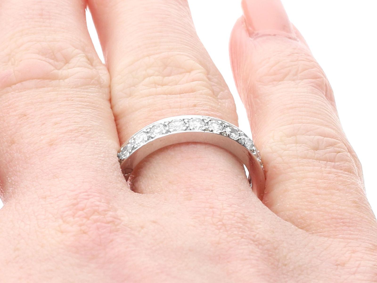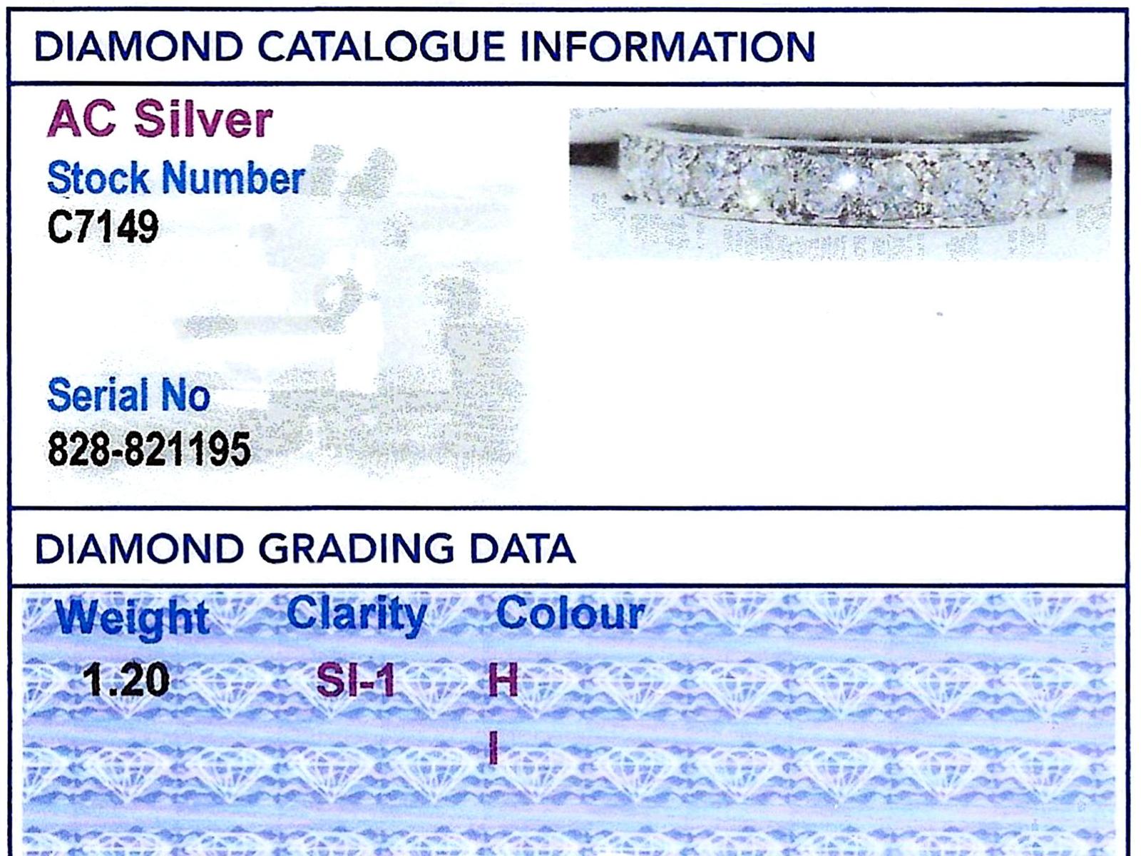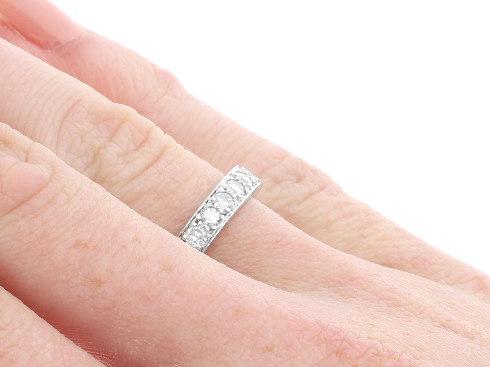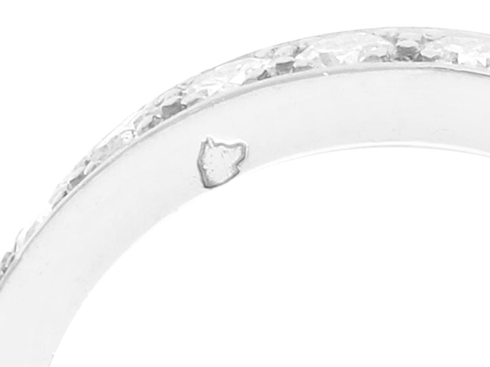 A fine and impressive 1.20 carat diamond and platinum full eternity ring; part of our diverse antique jewellery and estate jewelry collections.nnThis fine and impressive antique diamond eternity ring has been crafted in platinum.nnThis full eternity ring is ornamented with twenty-four transitional modern brilliant round cut diamonds, totalling 1.20cts.nnThe sides of the setting are plain and unembellished.nnThe ring is hallmarked to the side of the setting with the French maker’s mark and the platinum mark (dog’s head).nnThis impressive vintage eternity ring is supplied with an independent diamond grading report card.nnImages do not always reflect the true colour and brilliance of gemstones and diamonds. The video however provides a truer representation of the actual colour and showcases each stone.nnDiamond QualitynColour (average grades) H/InClarity (average grades) Si1nCut Transitional Modern Brilliant RoundnContent 1.20 carats