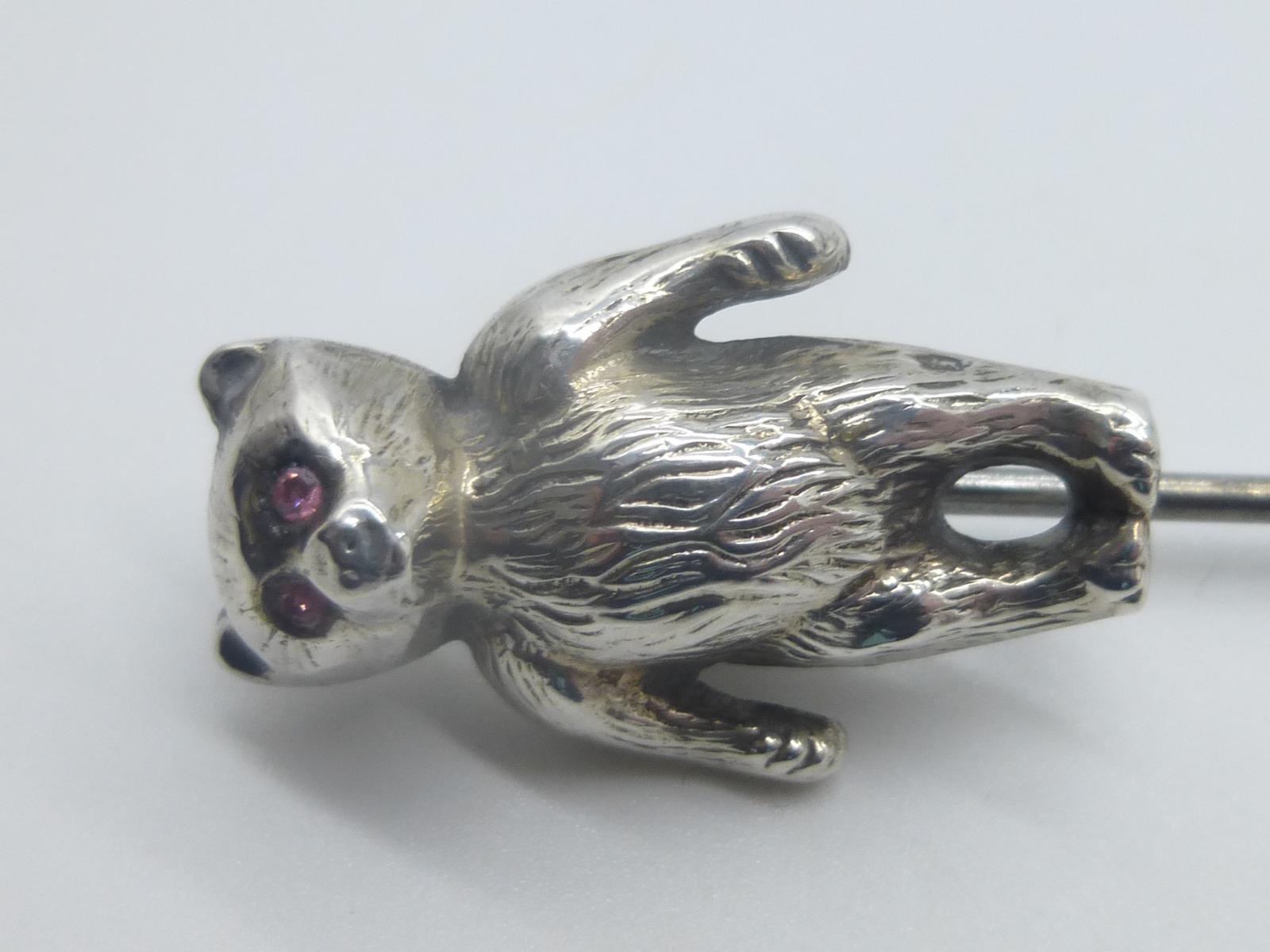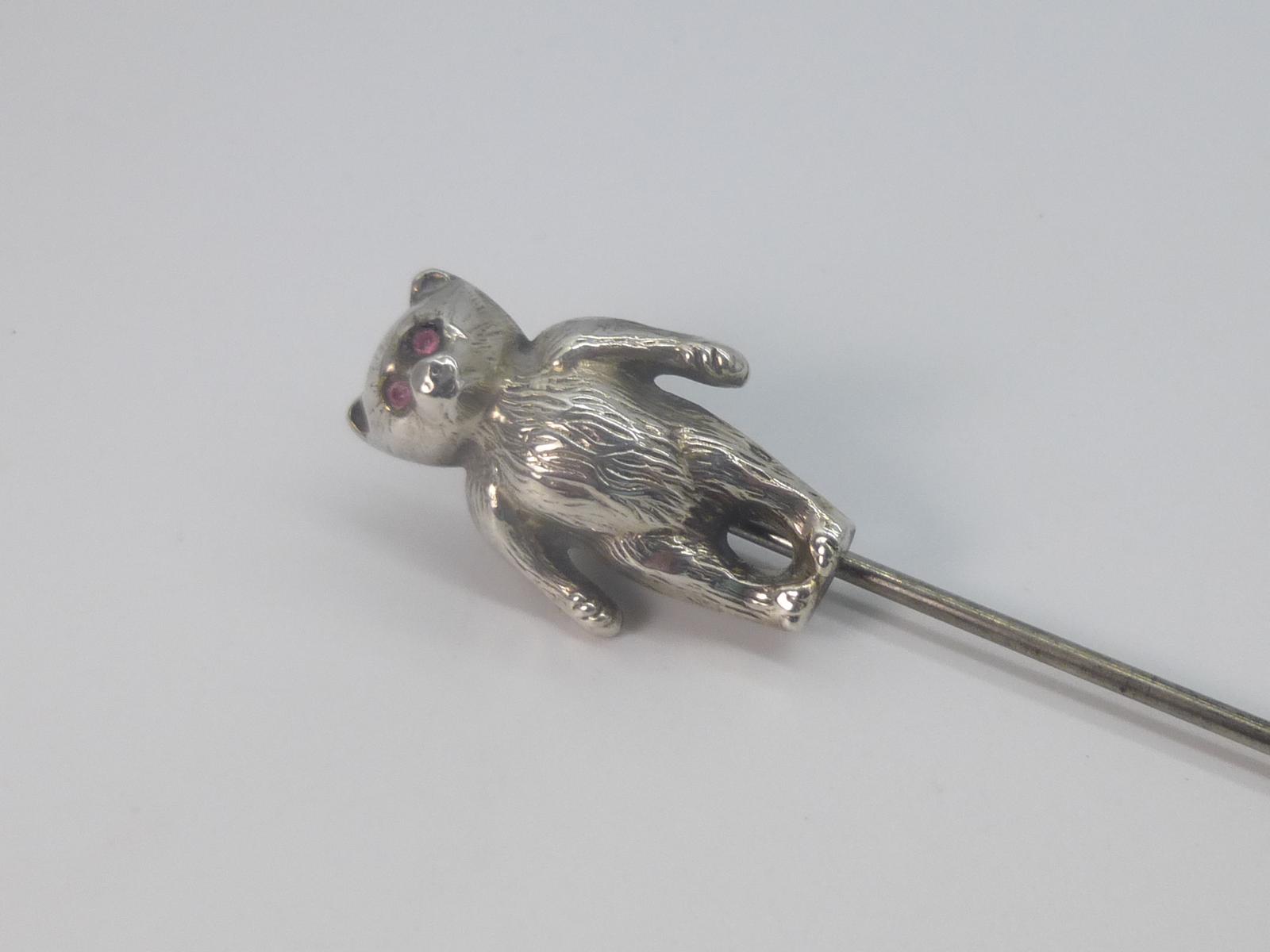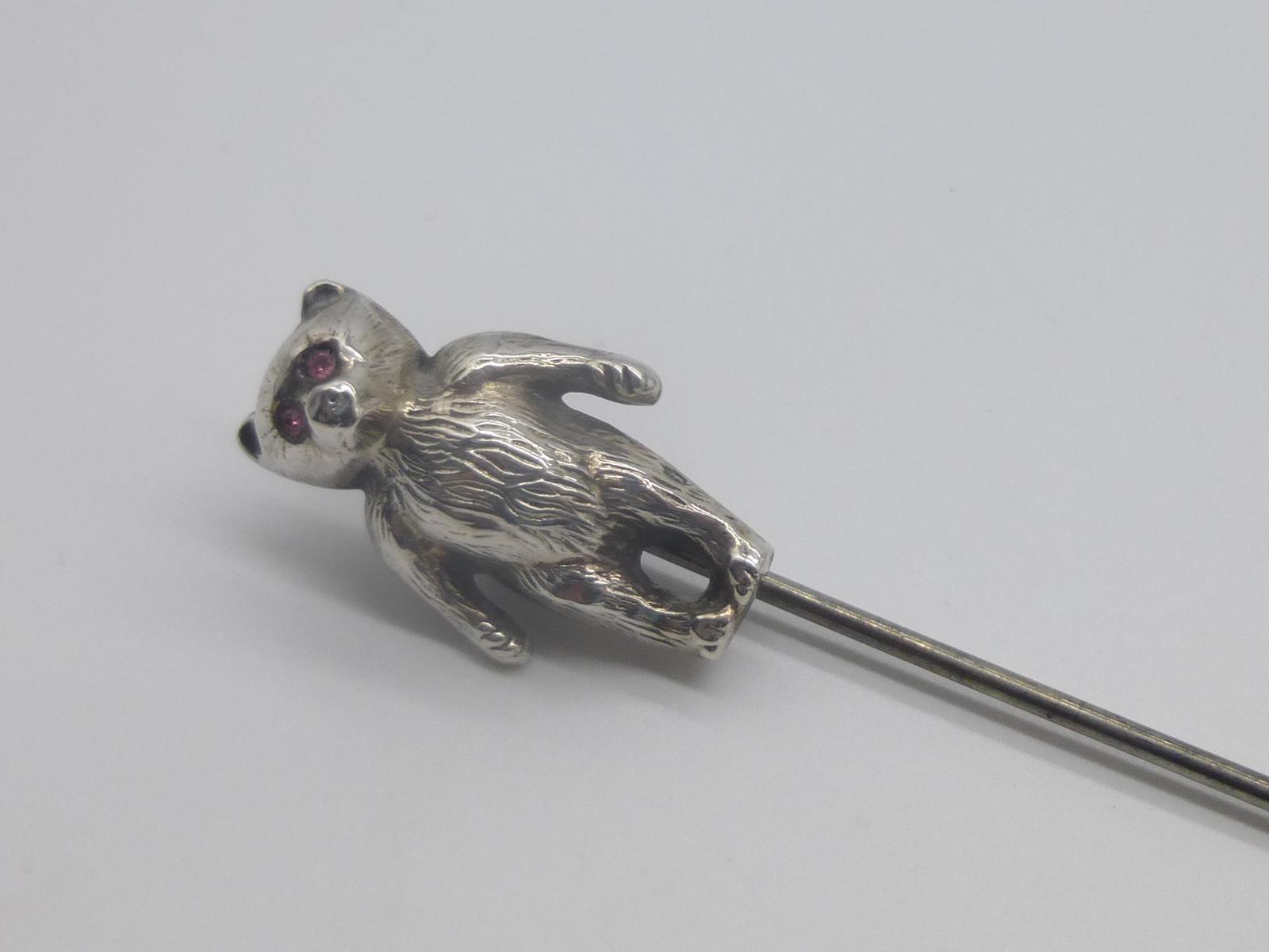 This is a delightful silver Teddy Bear hatpin, hallmarked Birmingham 1908. Set with paste stone eyes.nnPlease ring or e-mail with any further questions. Please press the Buy Now button to pay by debit or credit cards, or by Paypal account. We also accept payment by bank transfer